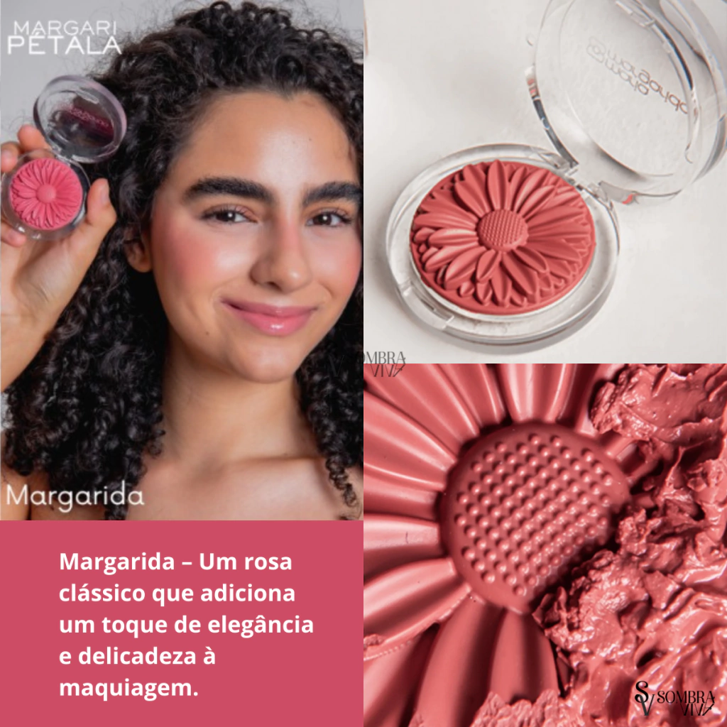 MargariPétala é um blush desenvolvido com uma fórmula de transição inteligente, que combina a cremosidade inicial com uma acabamento aveludado e natural. Sua textura inovadora permite uma aplicação suave, garantindo uma fusão perfeita com a pele para um efeito radiante e sofisticado.