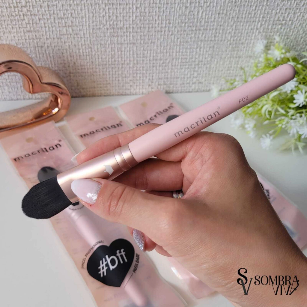 Pincel F02 Profissional para base Macrilan, especialmente desenvolvido para aplicar e distribuir base em creme ou líquida em todas as áreas da face. Feito com cerdas especiais que permitem uma aplicação suave e maquiagem uniforme.